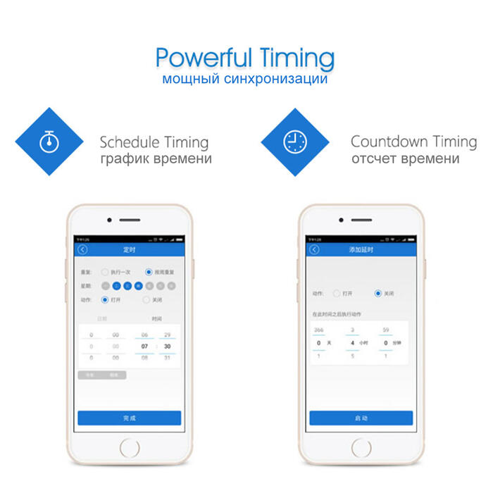 Consumers can remotely control the operation of home appliances by turning them on, off instantly or according to a user specified schedule, such as repeat or countdown.