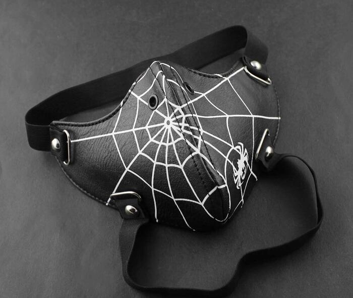 Spider Web Steampunk Biker Men Leather Half Face Mask Masquerade Black