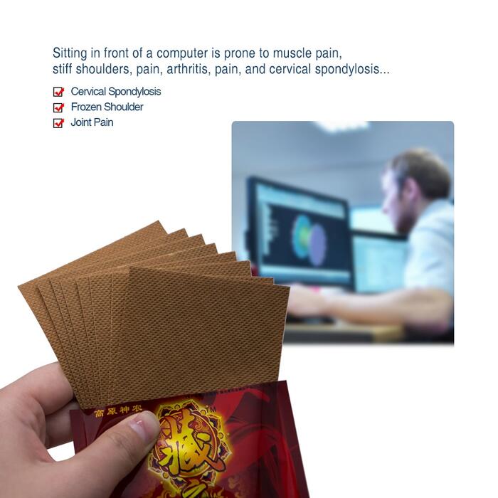 Chinese Pain Relief Plaster is a flexible pain relieving patch. Once applied, its ingredients penetrate the skin and are absorbed, thus stimulating blood circulation around the area of pain. The product provides fast, long lasting pain relief and comfort for hours. Felxible material with Medium Size suitable for relief back muscle pain, knee joint pain, frozen neck shoulders, wrist pain, arm fatigue, rheumatoid arthritis. You can cut the Patch to any size you wish to fit the site of your pain!