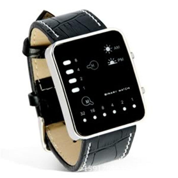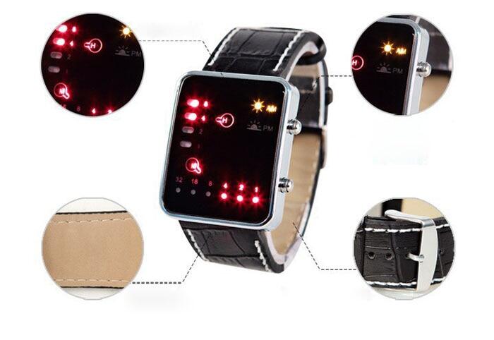 Men Women Digital WristWatches LED Dispaly Digital Red Sport Wrist Watch Binary Wristwatch PU Leather Women Mens Clock Relogio