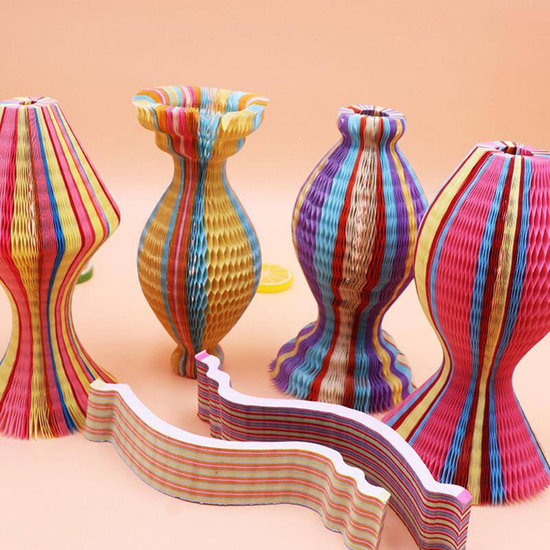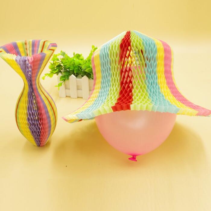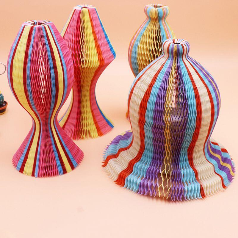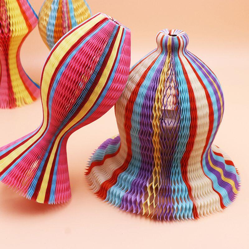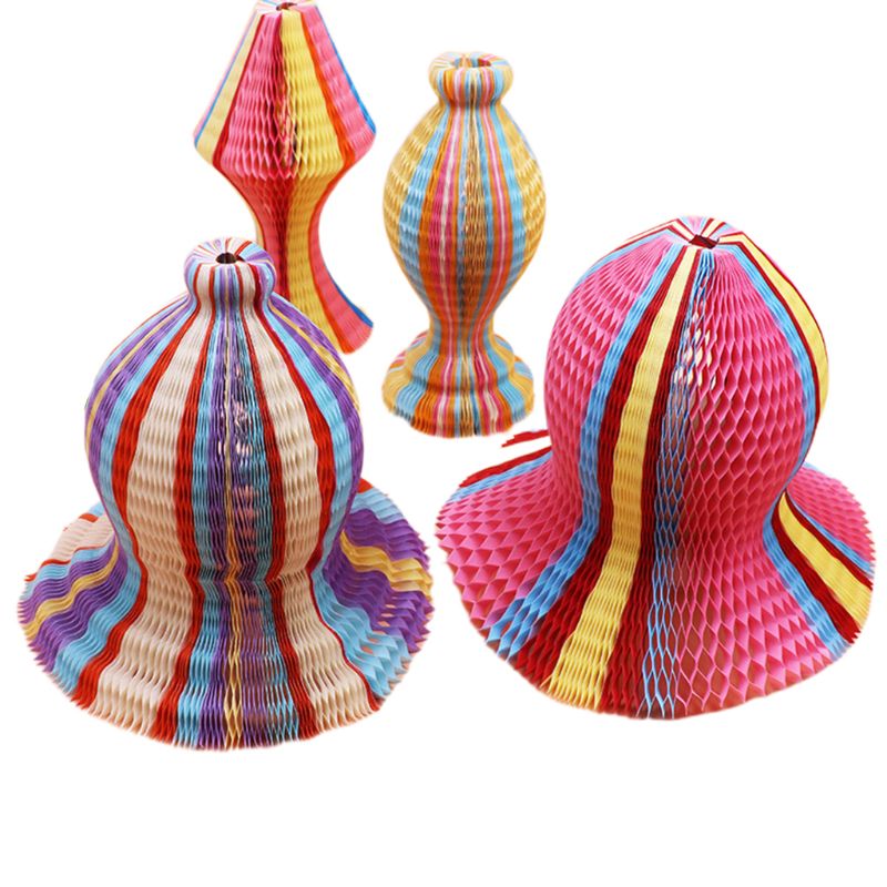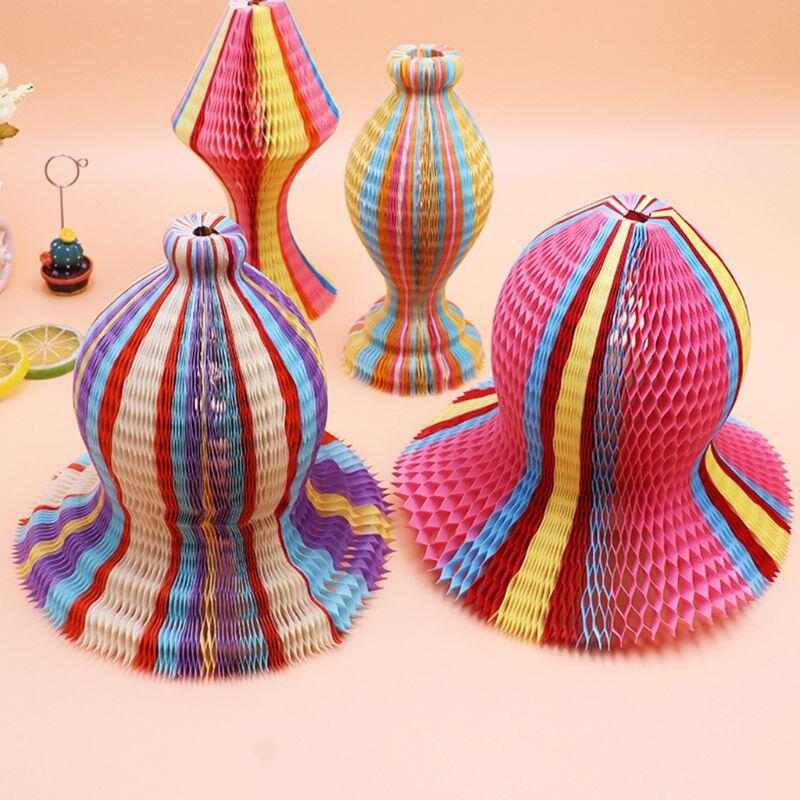 Summer Unisex Women Children Magic Honeycomb Paper Vase Hats Contrast Rainbow Colored Travel Folding DIY Sun Cap Party Favors