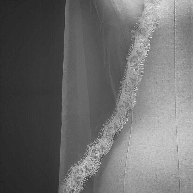 Women Wedding Accessories White Lace Veil 1 Layers Tulle Ribbon Edge Bridal Veils  - Image 7