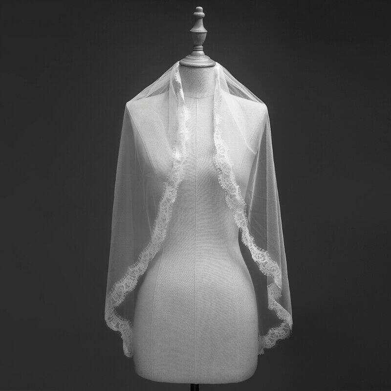 Women Wedding Accessories White Lace Veil 1 Layers Tulle Ribbon Edge Bridal Veils