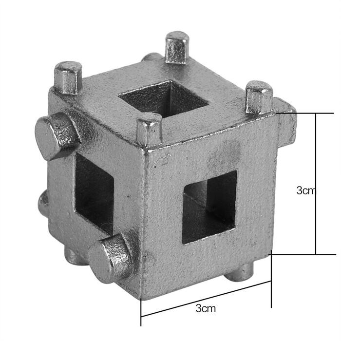 This is a cube tool to rotate piston back into brake calipers when replacing brake pads on vehicle with rear wheel disc brakes, and it is used with 3/8″ drive ratchet and extension. In addition, made from steel, the disc brake piston tool is very sturdy and durable, and you can use it on many universal vehicles with 4 wheels.