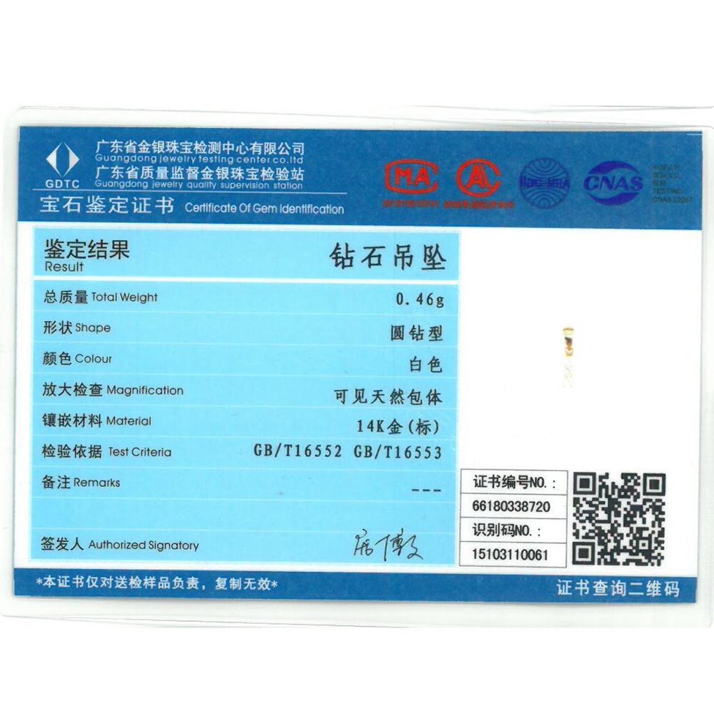 [Metal Type] 14K 585 Rose Gold [Metal Color] Rose Gold Color [Measurement] 2.61mm(L) X 14mm(H) [Stone]Round Diamond: 3pcs, 0.136ct [Product Net Weight] about 0.46g