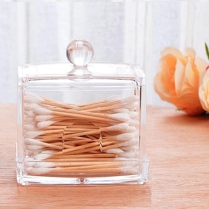 HomeHome Garden ApplianceHome StorageMakeup OrganizersTransparent Acrylic Cotton Swabs Sticks Box Holder Cosmetic Storage Box Makeup Organizer Case Portable Cotton Pads Container