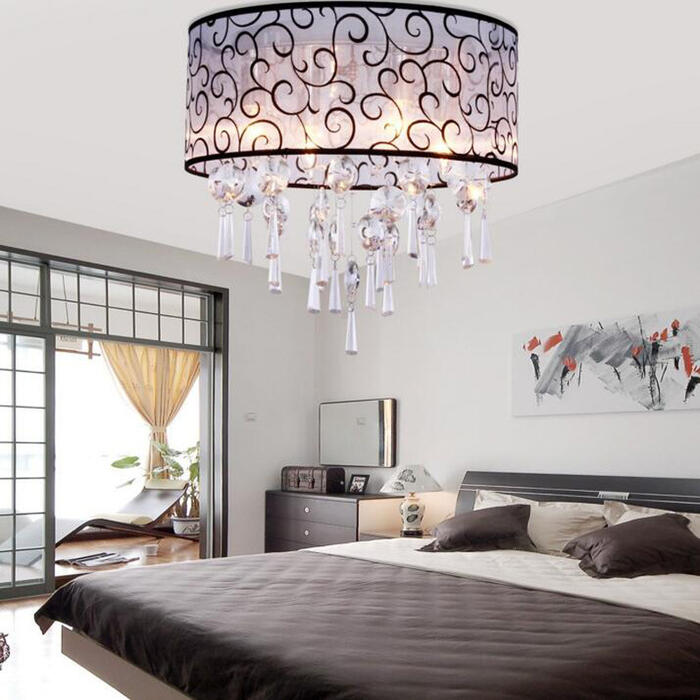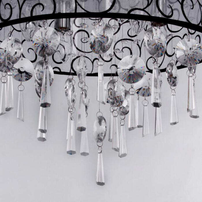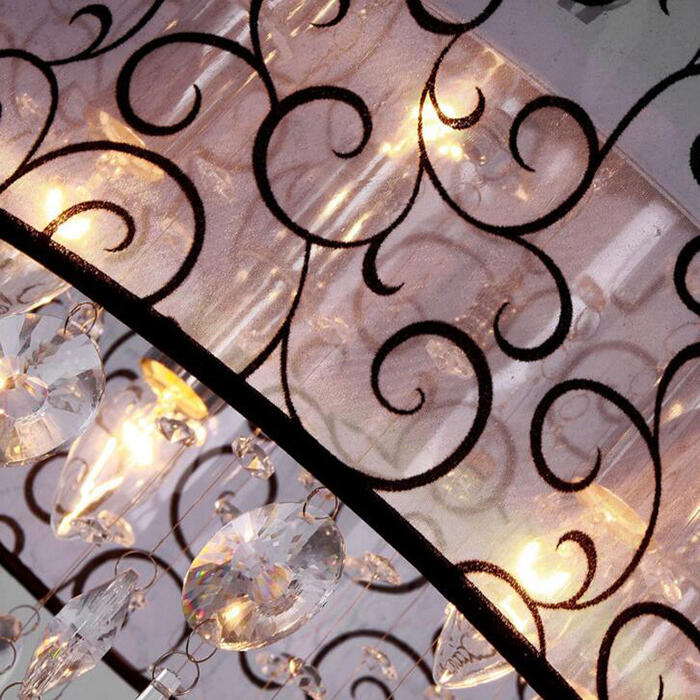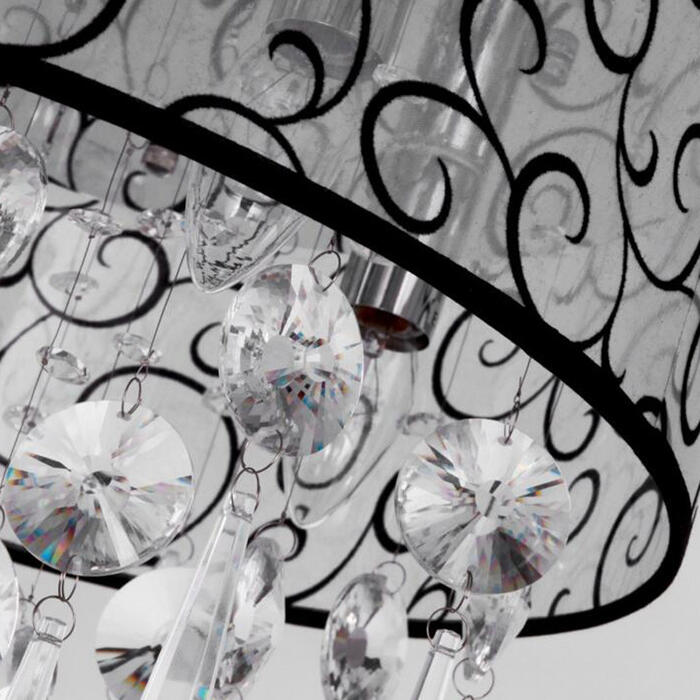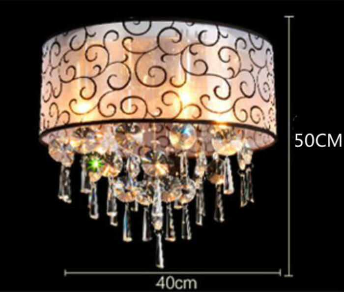 Size: length 40CM X height 50CMMaterial: brushed fabric shade; with crystalLight source: E14 bulb (small screw), does not contain bulbs,Number of bulbs: 4; LED bulbs are recommended