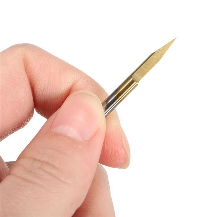 10PCS Titanium Coated Carbide PCB Engraving CNC Cutter Bits Router Tool 30° 0.2mm Description : Carbide rods and tungsten steel rods With high hardness, high wear resistance, high strength, resistance to bending. Anti impairment. Long tool life. Coated with titanium. Improve the speed and feed rate of the tool ,Improve the surface wear resistance. Range of processing: PCB, SMT, the CNC, mold, plastic, copper, stainless steel and other precision metal parts processing. Specification: Product Name: PCB engraving bit (carbide engraving bit Plating titanium) Material: blade carbide (tungsten steel) Type: Flat bottom engraving bits Shape: V-shape Degree: 30° Shank diameter: 3.175mm Cutting diameter: 0.2mm Total length: 30mm Package Included: 10X Titanium Coated Carbide PCB Engraving CNC Cutter Bits Router Tool 30° 0.2mm
