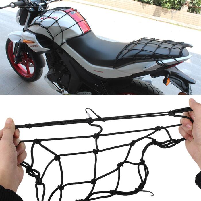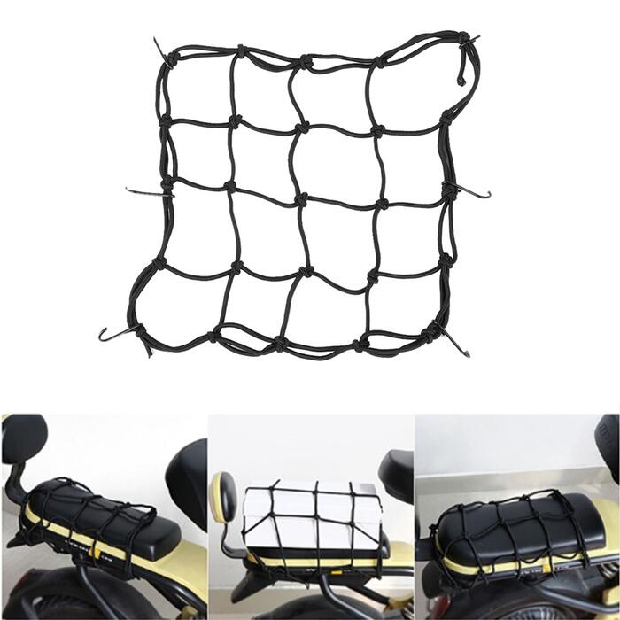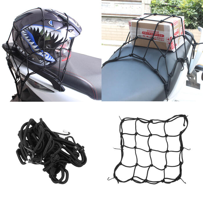Essential for storing spare helmets and jackets or equipment and luggage while you re on the road, the net is made from bungee cord, has 6 hooks to hold down luggage and other things.