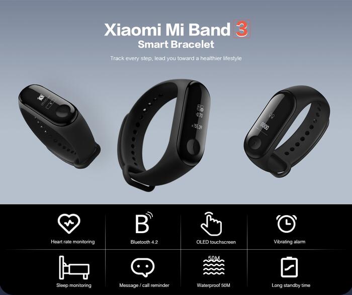 Original Xiaomi Mi Band 3 Smart Bracelet Heart Rate Monitor Bluetooth 4.2 Smart Watch Touch Screen OLED Message for Android iOS