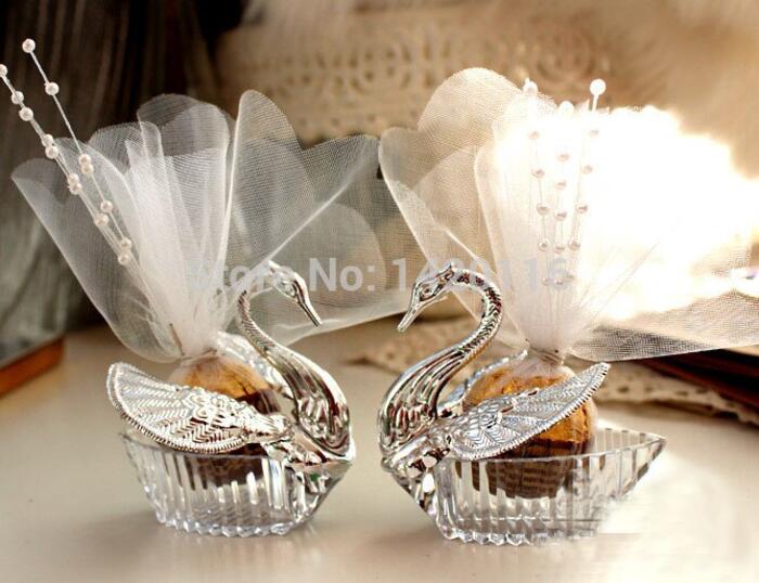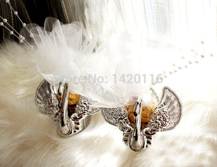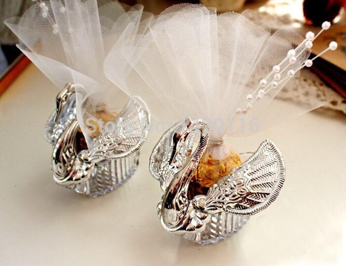 Condition: 100% brand new and First quality Material of the bottom case: Hyaline Acrylic Material of neck and wing: Imitation of metallic paint plastic Color: See the picture Height: Approx 7cm Length: Approx 7.5cm Quantity: 10Pieces Package Include: 10 pieces Swan wedding favor boxes (Not Include: yarn sheet, millet bead and candy and any other accessories)