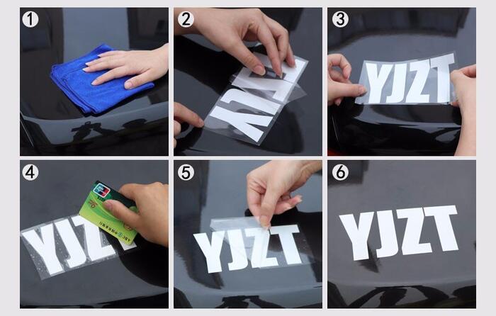 Application of the sticker is very easy, taking only minutes. Your sticker has 3 parts: Paper Backing Sticker Clear Transfer Tape 1 Clean the surface where the decal will be installed. 2 Slowly removed the paper backing making sure that your decal remains stuck to the clear transfer tape. If part of your decal lifts up with the backing, press the paper backing back down against it until it stays stuck to the transfer tape. 3 Once your decal is peeled away from the backing, line up & position your decal against the surface to which it will be applied. 4 Use a credit card, squegee, or something similar to smooth down your decal, making sure that it is completely stuck to the surface. 5 Carefully & Slowly, remove the transfer tape from your decal, making sure that your decal is stuck to the surface. If you see part of the decal does not release from the transfer tape, press it back down to the surface and repeat the process.