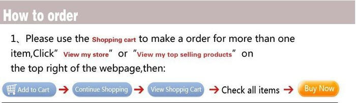 3.Handling time: We will dispatch the products within 5 working days upon the system confirms your payment;