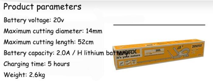 Handheld Fence Trimmer 20V Lithium Battery Garden Pruning Machine Electric Pruning Saw Battery Pruning Shears WG259E