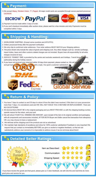 2, Please leave us a message in the order reminding us what kind of the voltage and the plug you need for an electric equipment. As you know different countries use different standard plugs and different voltage. 3, About the invoice and declaration value, if you have specific requirements you can also contact us or leave a message in the order. 4, About the payment, shipment please refer to following information.